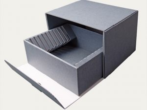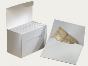 Архивные коробки, папки, файлы, тубы из бескислотного картона для транспортировки и хранения произведений искусства, соответствующие стандартам хранения музейных экспонатов и имеют соответствующие сертификаты. Срок изготовления – от двух недель до месяца.