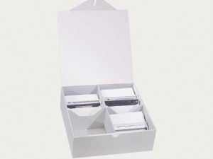 Складные коробки для рулонных пленок изготовлены из цельного белого фотографического архивного картона толщиной 0,5 мм. Они приходят на смену пластиковой упаковке, зачастую первоначально поставляемую с пленкой.