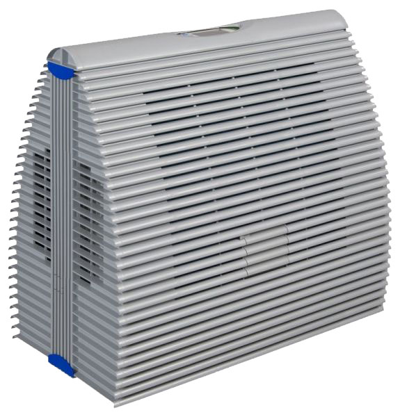 Работает по принципу холодного испарения – воздух продувается через специальный фильтр, который постоянно пребывает во влажном состоянии. Имеет встроенное электронное управление, большой бак (25 литров), вентилятор со ступенями вращения 1/2/автоматическая.